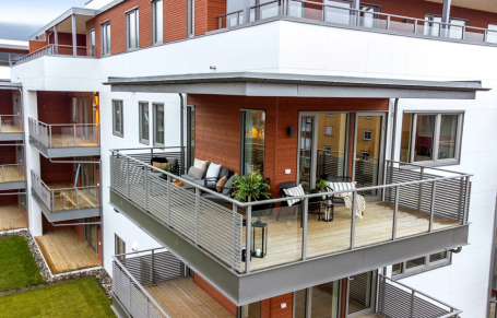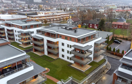 Flere av leilighetene har påkostet standard med stor terrasse og fin utsikt av områdene omkring.